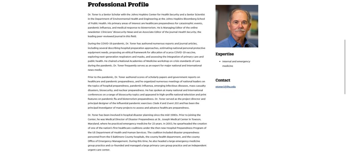 10🧵The other guest at the IQT round-table in Dec 2019 was Eric Toner. You'll recognize his name from my work. He is the lead scholar at JohnsHopkins Center for Health Security & was a key coordinator of Event 201 https://t.co/lCl6S7Y5lJ