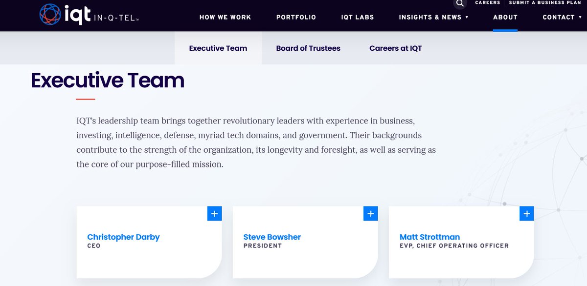 2🧵Before we get to those individuals we need to look at the company. In-Q-Tel [IQT] was created in 1999 by Ruth Davis a CIA director in the 1990's & Lockheed Martin. Since, it's become one of the most powerful venture capital firms in the world- all catering to the CIA https://t.co/DreBSDnErw