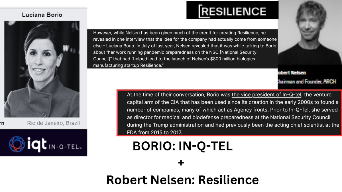 5🧵The VP of IQT is Luciana Borio who oddly enough was the inspiration behind National Resilience. Aside from that Borio is a JohnsHopkins grad, frmr director at the NSC, frmr FDA chief scientist. In 2020, she was appointed by the Council on Foreign Relations' pandemic Task Force https://t.co/eL4Y5m5PXH