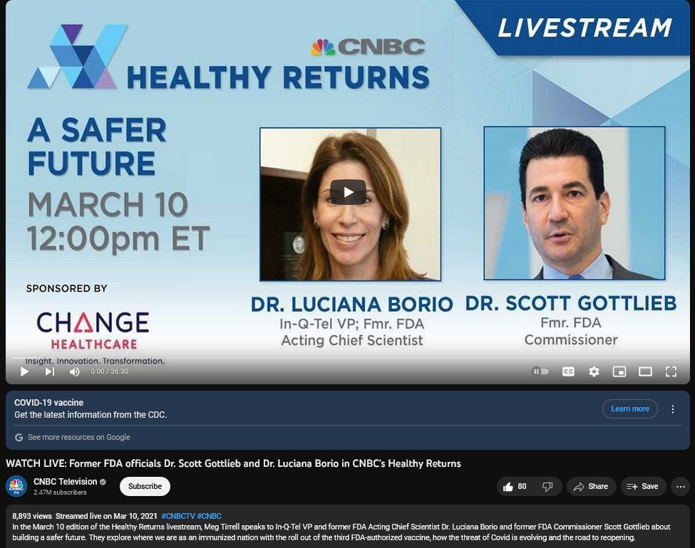 7🧵Both Borio, & Darby [IQT] officials were very outspoken during the pandemic. In 2021 Borio appeared on CNBC for a segment on C19 restrictions & vaccines w/ Another Nat'l resilience board member, the frmr director of the FDA, Scott Gottlieb. 🔎 https://t.co/UKIvT9I6aa