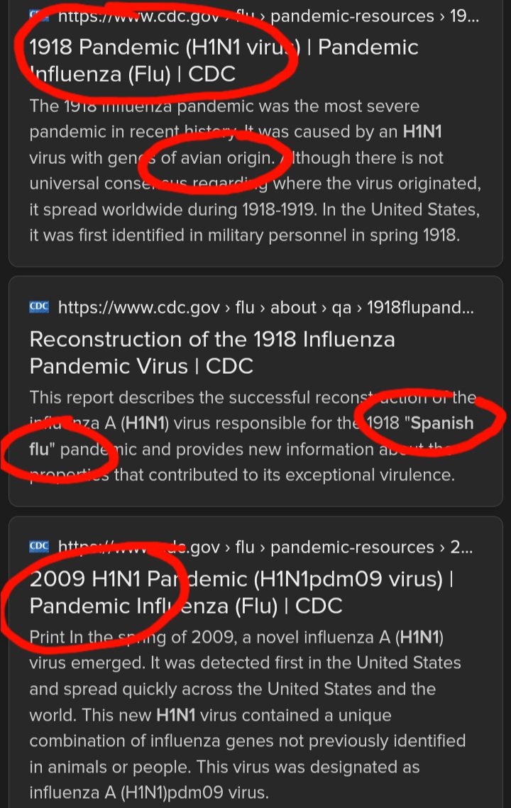 Spanish Flu 1918 was H1N1 Corona virus which was released again in 2009, after Bird Flu in 1995, which sounds silly but it wasn't. This stated by the CDC. ๐ https://duckduckgo.com/?q=cdc+h1n1+Spanish+flu&t=ofa&ia=newsโฆ ๐ People couldn't walk and had miocarditis symptoms. Wasn't really chicken or bird either because migrating to humans and animals, pigs cows.. ๐