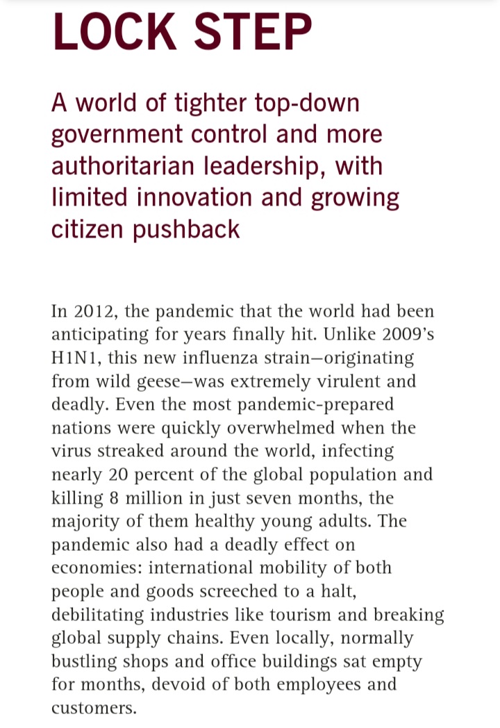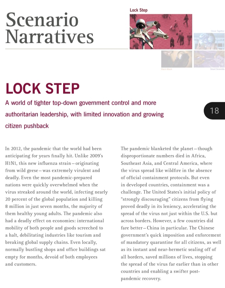 Lock Step or LOCKSTEP? ๐คฏ๐คฏ๐คฏ 2009 in fact. ... amazing.. Work on COVID 19 started in 2008 in NIAID and Antony FAUCI was running it as NIAID director. Vaccine (not to use in humans) ready in 2012, NIAID & Moderna property. https://principia-scientific.com/2010-rockefellers-operation-lockstep-predicted-2020-lockdown/