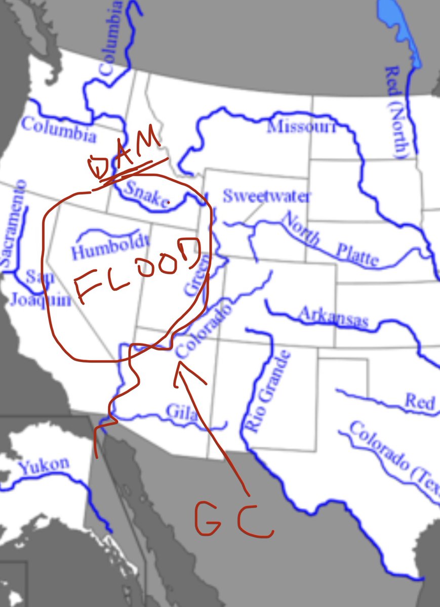 Ancient maps don’t show the Grand Canyon. Seems highly unlikely and sus this wouldn’t have been a known geographic feature. What if [they] dammed off the Snake River, to create a flood to destroy most of the Western US. All the pressure from the water releasing created GC. https://t.co/Z23dpAIB0J