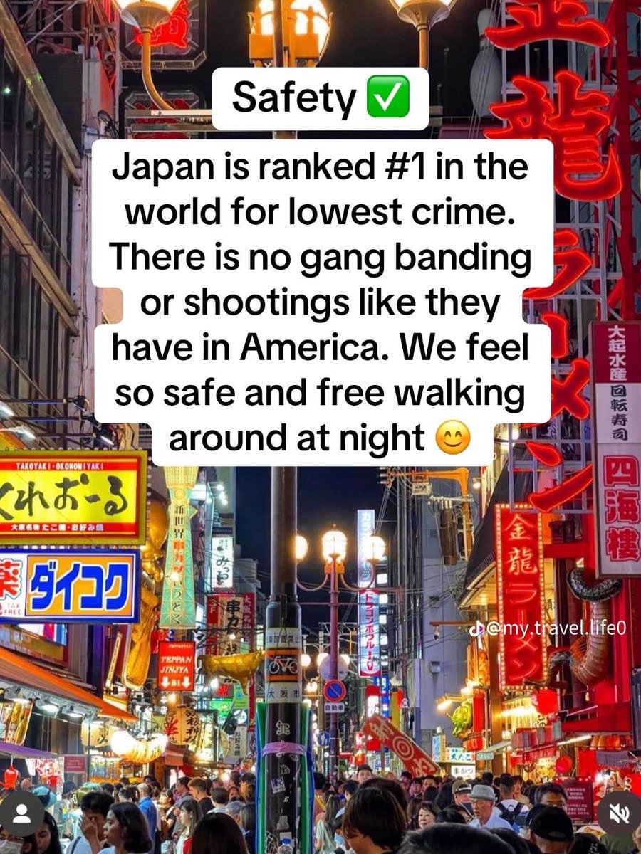 8. Sorry to those who expected to see bad news about Japan. They have the lowest crime rate in the world and is one of the best countries you can ever be at👏🏻❤️ https://t.co/FTTrCBr012