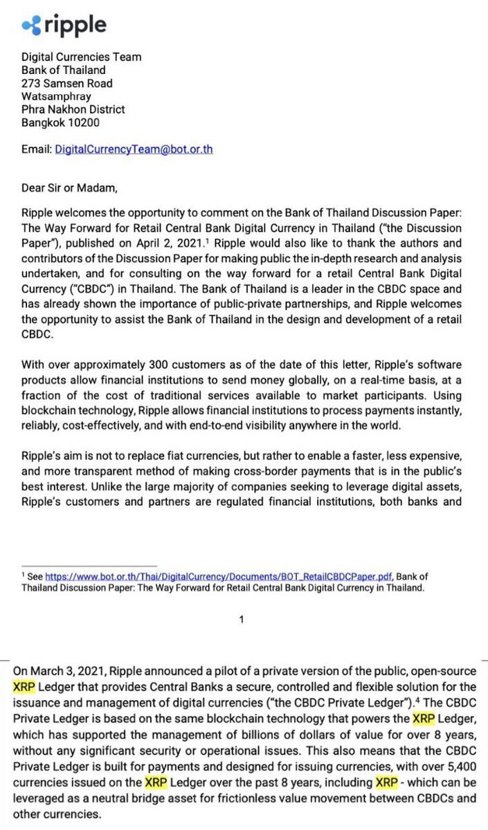 ππππππ, $πππ ππ§π ππππππππ πΉπ ( ππππ ) @Ripple has been communicating with the CENTRAL BANK π¦ OF THAILAND πΉπ and the document suggests $XRP can be leveraged as a neutral bridge asset for frictionless value movement between CBDCβs and other currencies on the PRIVATE #XRP LEDGER designed for banks. βππ©π¦π³π¦π§π°π³π¦, πΈπ¦ π³π¦π²πΆπ¦π΄π΅ π΅π©π¦ ππ’π―π¬ π°π§ ππ©π’πͺππ’π―π₯ π€π°π―π΄πͺπ₯π¦π³ π΅π©π¦ π³π°ππ¦ π’ π―π¦πΆπ΅π³π’π π£π³πͺπ₯π¨π¦ π’π΄π΄π¦π΅ π΄πΆπ€π© π’π΄ $XRP π€π’π― π±ππ’πΊ πͺπ― π΅π©π¦ π₯π¦π΄πͺπ¨π― π°π§ π’ π³π¦π΅π’πͺπ ππππβ