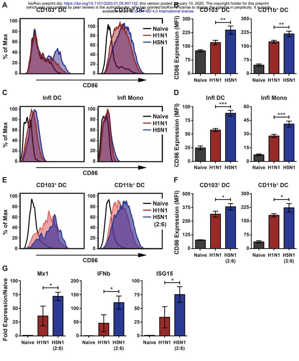 2) The study investigated how excessive innate immune responses to H5N1 avian influenza virus impair subsequent adaptive T cell responses. Infection with a recombinant H5N1 virus carrying the internal genes of H1N1 (H5N1(2:6)) induced higher activation of lung dendritic cells.. https://t.co/ga4Rwf1RO6
