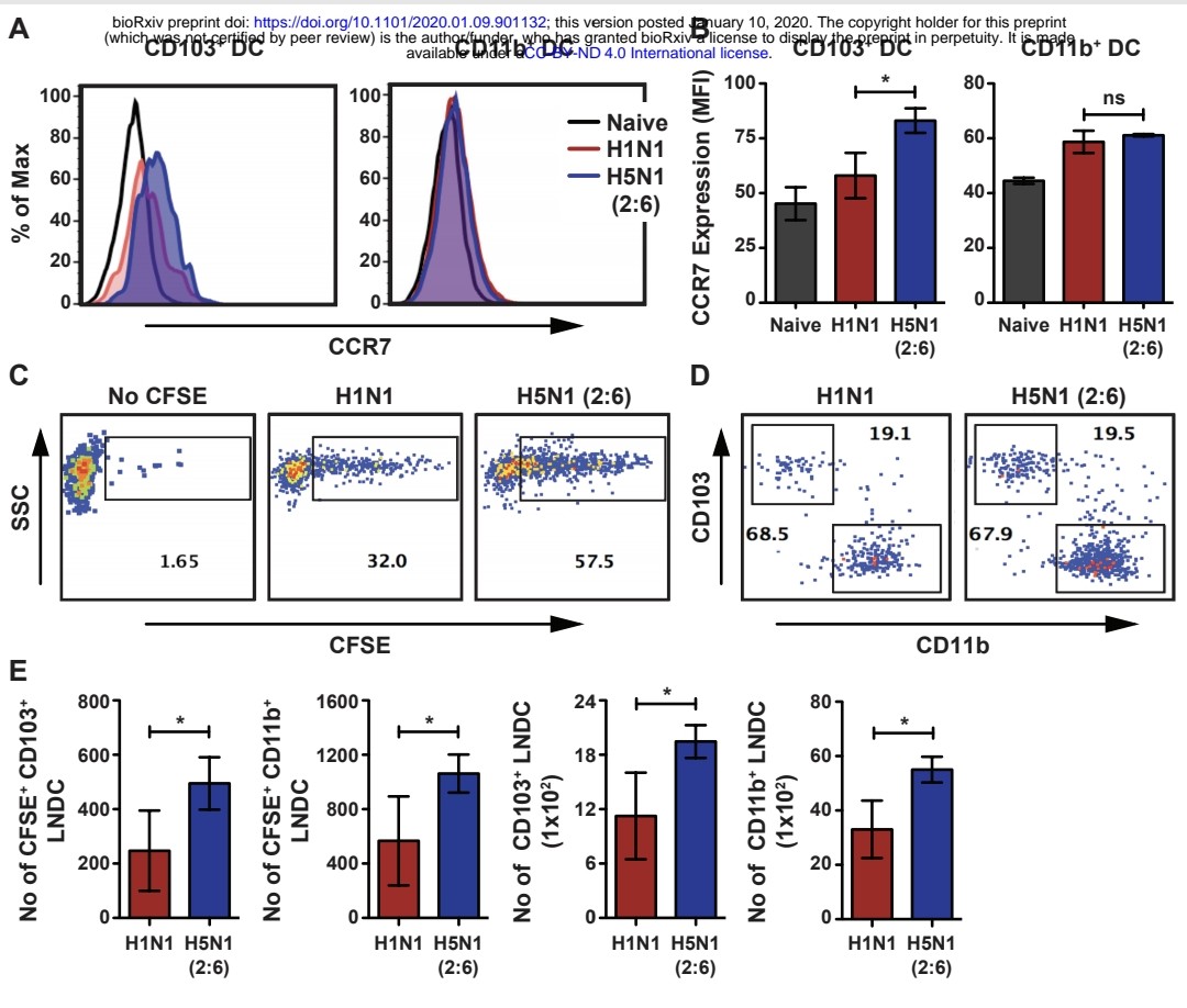 3) ...compared to infection with H1N1 alone. H5N1(2:6) infection led to increased migration of lung dendritic cells to the draining lymph nodes, resulting in robust activation of virus-specific CD8+ and CD4+ T cell responses in the lungs. https://t.co/rUJ37DscQB