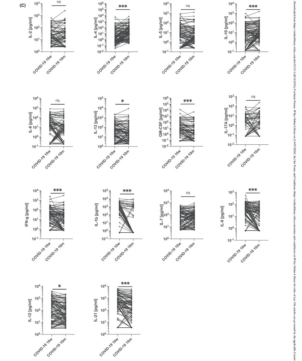 3) Patients had reduced levels of various immune cells, including those that fight infections. Their antibody levels against the virus also dropped substantially over time. The immune system also shifted from a pro-inflammatory state to one focused on allergic responses. https://t.co/MT714DGsv9