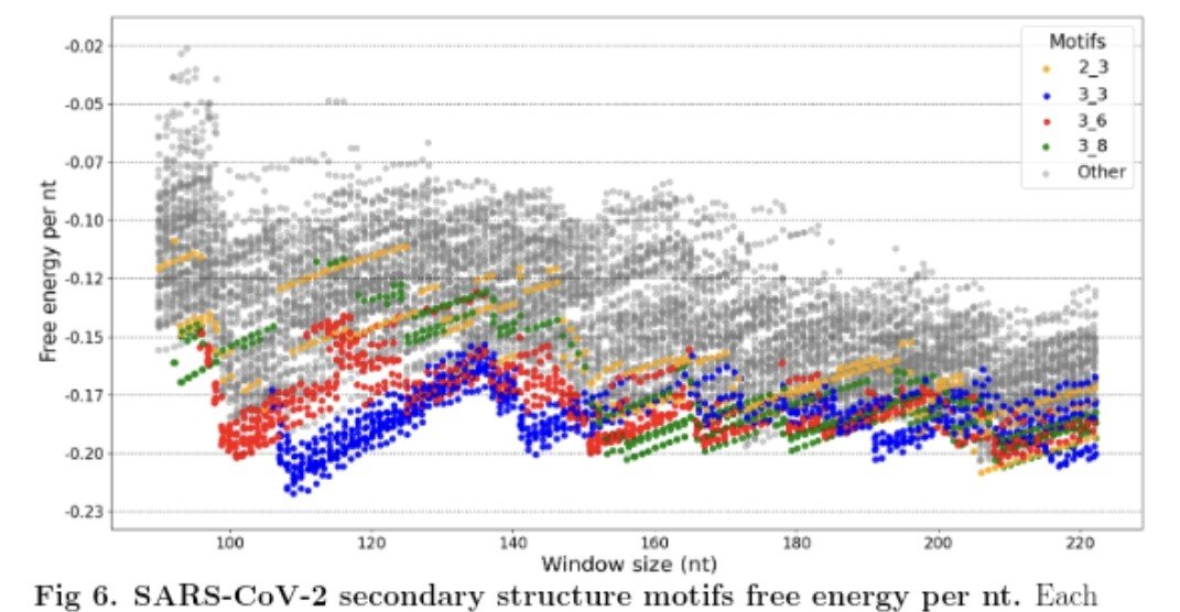 5) In the study, "Leveraging the fact that all coronaviruses use -1 programmed ribosomal frameshifting (-1 PRF) to replicate, we apply algorithms to predict the most energetically favourable secondary structures (each nucleotide involved in at most one pairing)