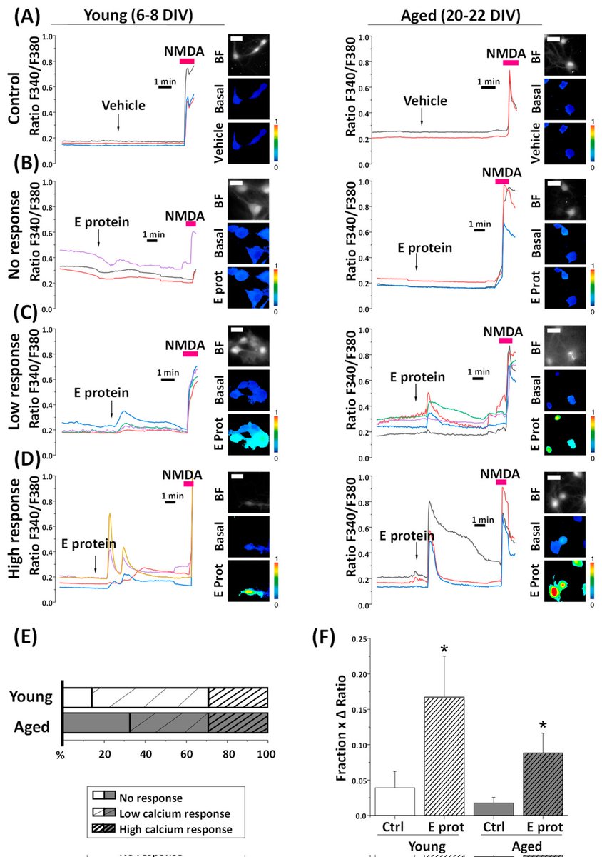 9) ...doesn't kill younger neurons (6-8 days). ▶️ The E protein makes calcium levels inside the hippocampal neurons go up and down in different ways. Older neurons have much bigger changes in calcium levels compared to younger neurons. https://t.co/UwT6zHj4cm