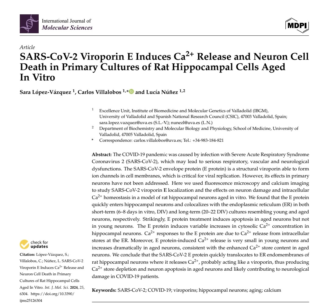 11) ...killing the older neurons. In summary, the SARS-CoV-2 E protein can get inside hippocampal neurons, disrupt their calcium regulation in the ER, and selectively cause older neurons to die. This helps explain how SARS-CoV-2 proteins may contribute to brain problems. https://t.co/6CyJtpE2Bx