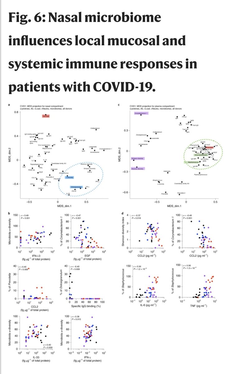 7) But above all : "Nasopharyngeal ‘dysbiosis’ may precede SARS-CoV-2 infection rendering these individuals more susceptible to COVID-19 morbidities. Previous studies have documented ‘pathobiont’ carriage (including Staphylococcus aureus, Streptococcus pneumoniae