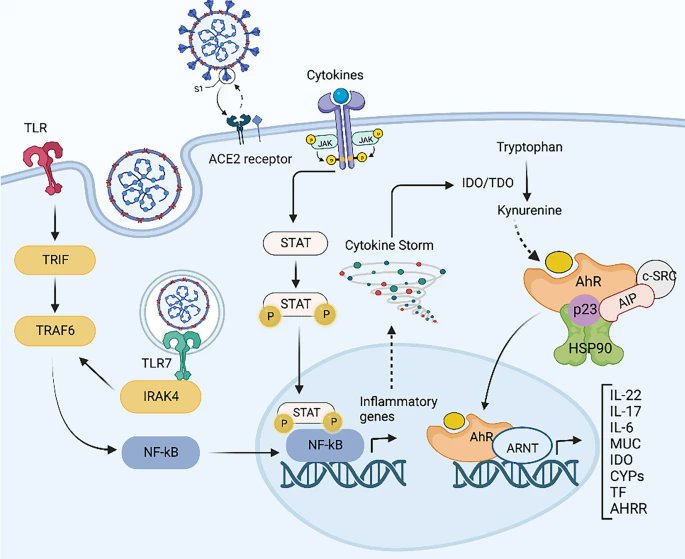 6) ...and reduced NAD+ from excessive QUIN. Lingering virus fragments could sustain inflammation driving KP dysregulation. Modulating the KP may help manage COVID-19's impact. Targeting IDO-1 or inhibiting neurotoxic metabolite production reduce inflammation and neurotoxicity. https://t.co/w12HJLCIPr