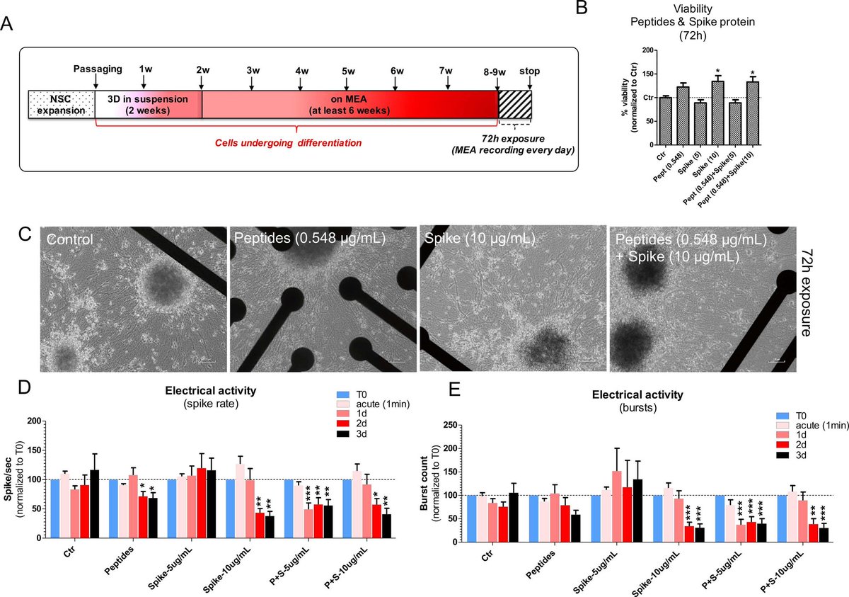 4) ...including SPHK1, ELN, GASK1B, HEY1, UTS2, and ACE2. Exposure to spike protein caused a decrease in spontaneous electrical activity in long-term differentiated cultures, suggesting perturbation of neuronal network function. https://t.co/ekIEBl1fNM