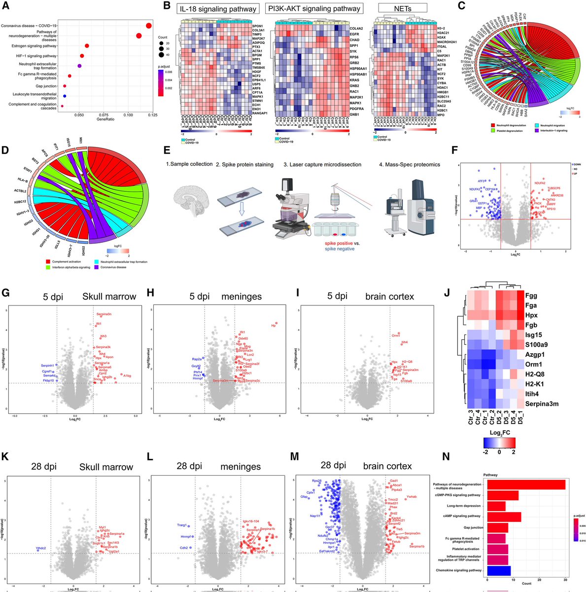 7) The figure 3 shows proteomic changes in the skull, meninges, and brain of COVID-19 patients and mice, revealing dysregulation of immune, inflammatory, and neurodegeneration-related pathways. https://t.co/Vvmctitapy