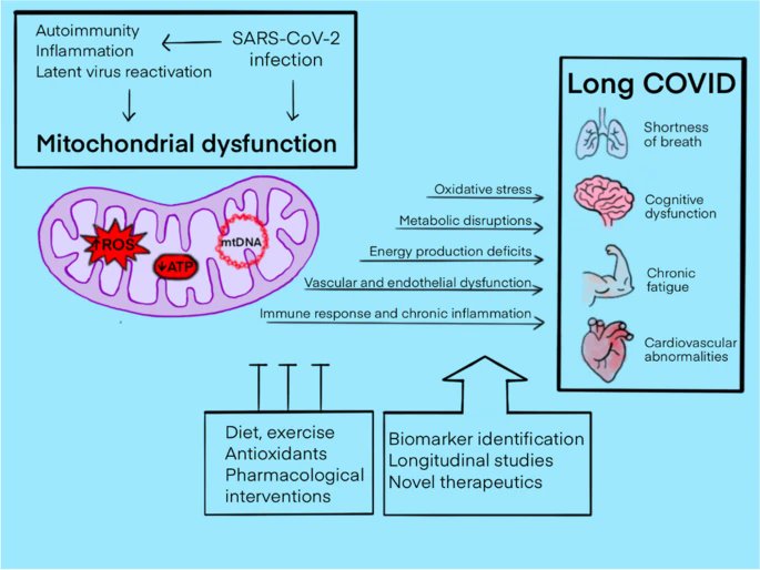 3) ...and muscle weakness through mechanisms like reduced energy production and increased oxidative stress. Evidence of mitochondrial dysfunction in long COVID comes from studies showing abnormalities in mitochondrial respiration, gene expression, and ...