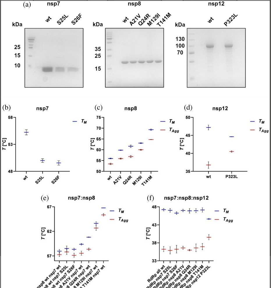 3) Using techniques like nano-differential scanning fluorimetry and microscale thermophoresis, the study assessed how mutations affected protein stability and RdRp complex assembly. https://t.co/sRSzkNVVCY