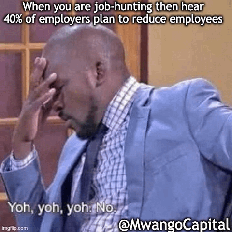 4. Federation of Kenya Employers [ @FKEKenya] issued projections that 40% of employers plan to reduce employees to meet increasing operating costs in Kenya. This is in addition to employers shedding 70k jobs in the last one year. #MwangoMemes