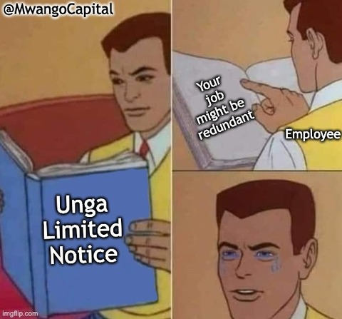 5. In more unemployment news, Unga Group [ @UNGAGroupPLC ] announces intention to lay off ~50 workers as the economic situation gets tough and the business comes under increased competition. #MwangoMemes