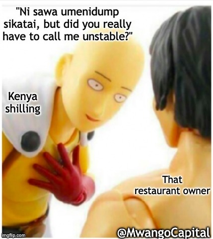 9. A restaurant owner has effected a new policy requiring all customers to pay for meals and services in dollars on account of the weakening Kenyan Shilling. "We want a stable business; the shilling is not stable.” #MwangoMemes https://t.co/uTiqd2i3qo