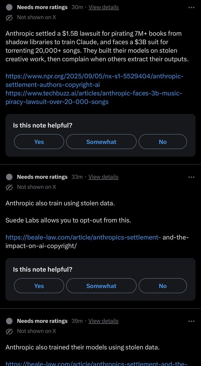 Anthropic is guilty of stealing training data at massive scale and has had to pay multi-billion dollar settlements for their theft. This is just a fact.
