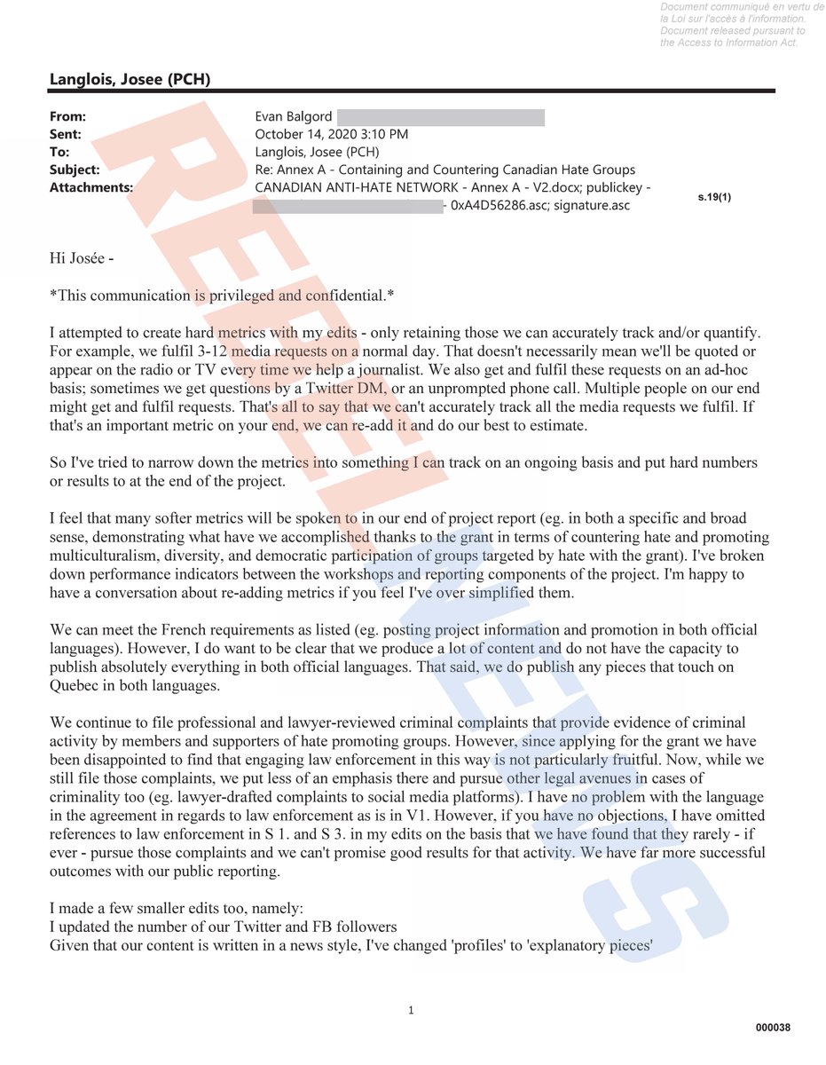 In Canada, the Trudeau government has been quietly paying left-wing lobby groups hundreds of thousands of dollars to file nuisance lawsuits against Trudeau's enemies. This takes the form of complaints to police and legal threats to social media companies demanding they censor conservatives. Attached is a document obtained by @RebelNewsOnline through an Access to Information request clearly showing that. Trudeau is using tax dollars to pay third parties to harass his political enemies. Note that the NGO in question, the ironically named @antihateca, wanted to keep this document "privileged and confidential" -- what they're doing was a secret. But what Trudeau's new bill C-63 does is it removes the need for race hustlers and grifters to apply for government grants. Now they can just file complaints -- by the dozen, by the hundred, by the thousand -- to the Canadian Human Rights Tribunal, and extract the money from their political targets directly. C-63 lets anyone who files a complaint demand up to $20,000 per complaint from their targets. Conservatives will have to pay for their own persecution, like when Stalin sent the families of the people he had executed a bill for the bullet they used. Now the vexatious litigants on the left can get their money directly from their enemies list. cc. @jordanbpeterson