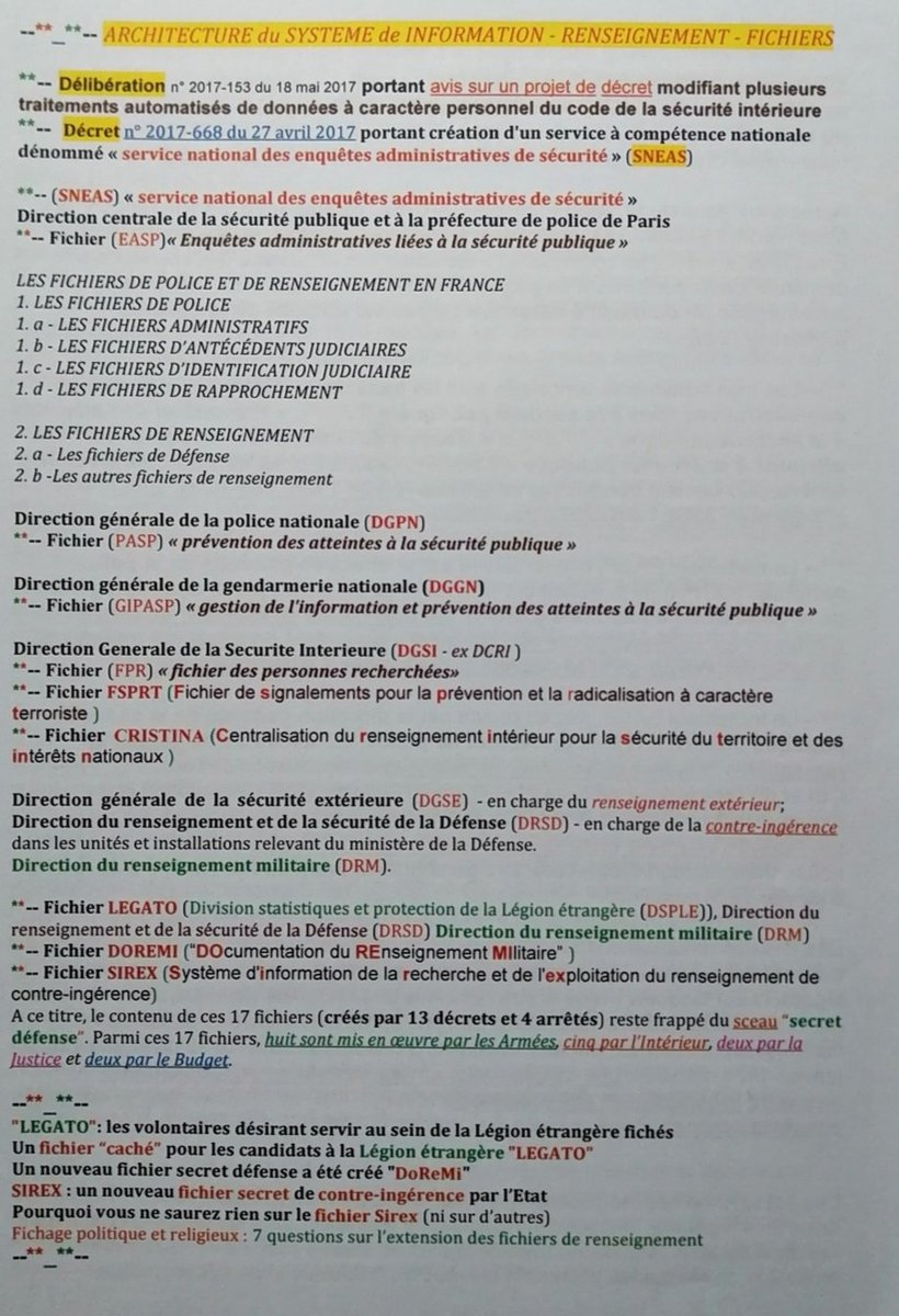 @FrancoisBoulo @BrunoBertez @AniceLajnef @DidierMaisto @Etienne_Chouard @GaveEmmanuelle @CGalacteros @BugaultV @CampagnolTVL @Insolentiae @ToddVousObserve @HogardJacques @DidierTauzin @bruguigue @russeurope @despotica @R_DeCastelnau @PhdeVilliers @AurelienDuchene @bechetgolovko @michelmaffesoli @Michel_Goya @zonemilitaire @Verhaeghe @YvesPDB @VGautron @alancelin @rene_chiche @CF2R_Officiel @UPR_Asselineau @f_philippot @p_duval @BasPhilippe @lereveildatlas @antoine27955080 @JuvingBrunet @OBerruyer @k_lhk @MFGaraud @CADTM_int @anatolium @Youssef_Hindi @CaudeHenrion @raoult_didier @EChabriere @GilbertCollard @valerieboyer13 @philippeherlin @regis_ollivier {THREAD - ®©47} (V2-2020) [ mise à jour] ..volonté de tout contrôler : 60 fichiers. Nouveaux fichiers :-classé « secret-défense » : nom DOREMI, (Direction du renseignement militaire). @MaxDelvallee Red text : https://rebellyon.info/Brochure-mise-a-jour-La-folle-volonte-de-22448 DOC PDF (V2-2020): https://rebellyon.info/IMG/pdf/fichiers-de-police-justice-renseignement-v2-longue-2020.pdf