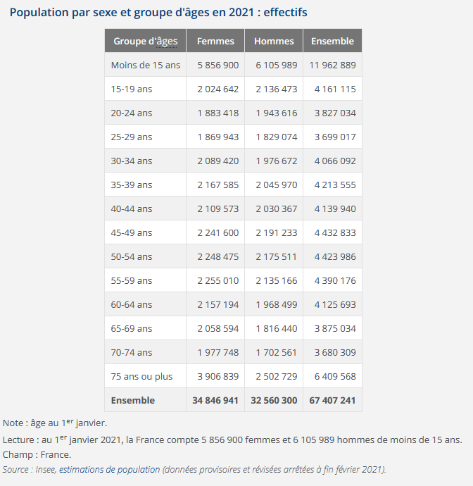 @FrancoisBoulo @BrunoBertez @AniceLajnef @DidierMaisto @Etienne_Chouard @GaveEmmanuelle @CGalacteros @BugaultV @CampagnolTVL @Insolentiae @ToddVousObserve @HogardJacques @DidierTauzin @bruguigue @russeurope @despotica @R_DeCastelnau @PhdeVilliers @AurelienDuchene @bechetgolovko @michelmaffesoli @Michel_Goya @zonemilitaire @Verhaeghe @YvesPDB @VGautron @alancelin @rene_chiche @CF2R_Officiel @UPR_Asselineau @f_philippot @p_duval @BasPhilippe @lereveildatlas @antoine27955080 @JuvingBrunet @OBerruyer @k_lhk @MFGaraud @CADTM_int @anatolium @Vukuzman @AQuatennens @JLMelenchon @mdiplo @HuygheFB @FChauvancy @SCOTPaul31 @regis_ollivier @patrick_jaulent {THREAD -®©-77} France : Population par sexe et groupe d'âges - Données 2021 Le bilan démographique contient : - la population de la France estimée au 1ᵉʳ janvier .. - l'évolution de la situation démographique. - les principaux indicateurs démographiq... https://www.insee.fr/fr/statistiques/5007726#consulter-sommaire