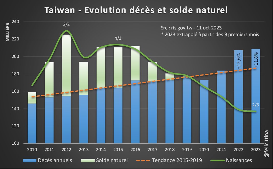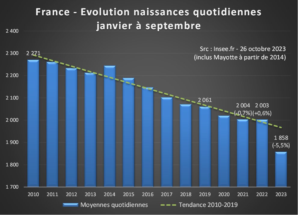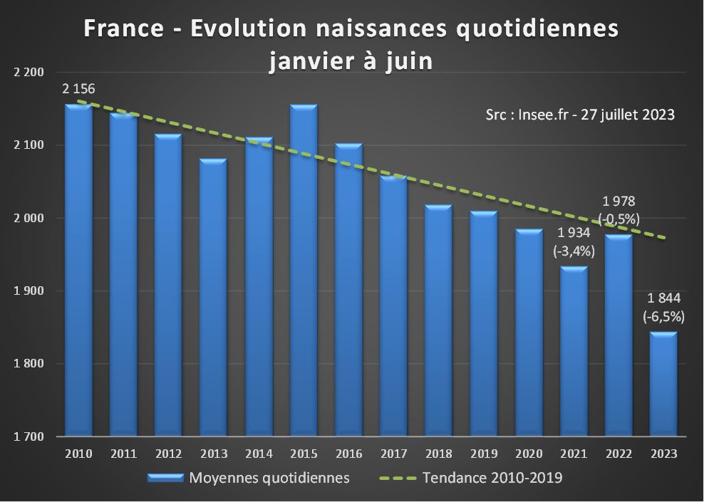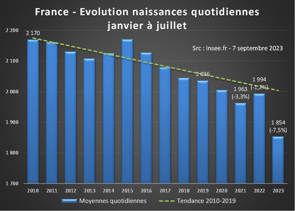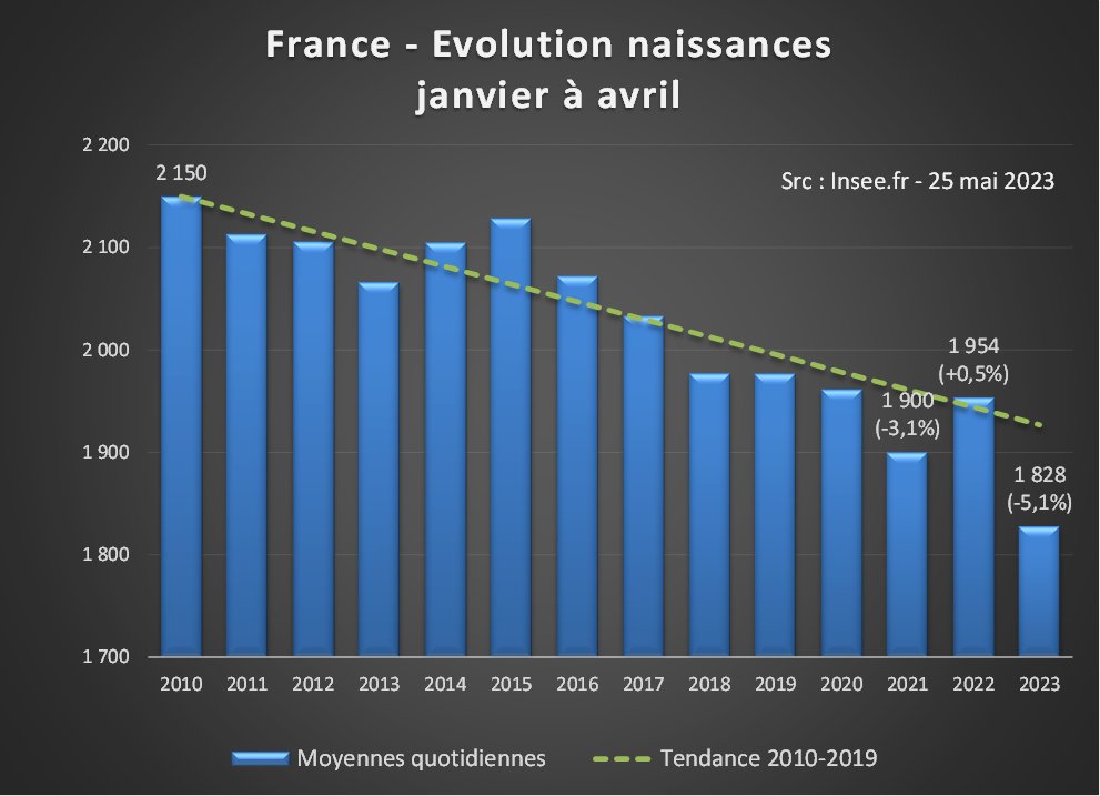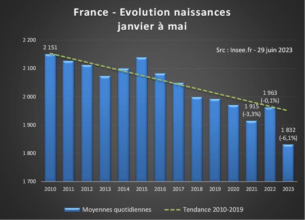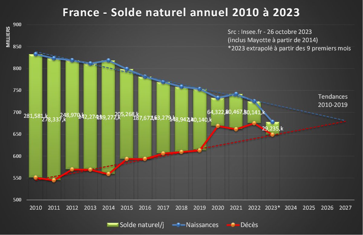 Depuis 2020, malgré quelques embellies, le déficit cumulé par rapport aux naissances attendues dépasse les 75 000. Sans amélioration de trajectoire, la France pourrait connaître en 2023 son premier solde naturel négatif (décès>naissances) depuis… 1944😩 [2/4]