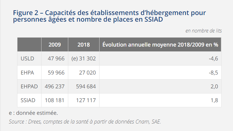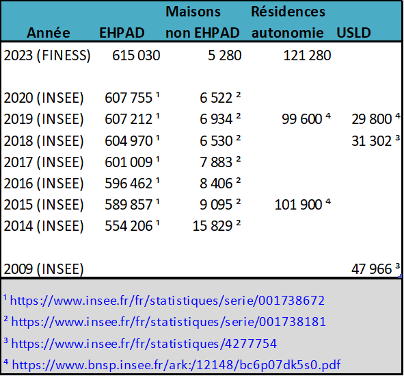 Hypothèse 1 : Changement du périmètre "établissements personnes âgées" (définition non trouvée sur @InseeFr) . On pouvait penser aux unités hospitalières de soins de longue durée (USLD) mais ce document présent sur le site laisse penser qu'elles sont déjà incluses. [3/15]