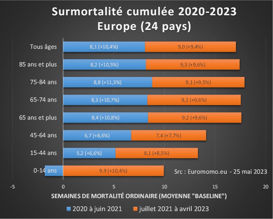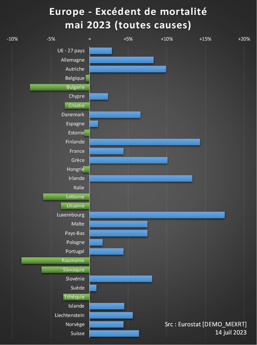 @PeterbobBaze @EU_Eurostat Il ne s'agit que des chiffres pour le seul mois de mai (dernier calculé par Eurostat). Voir la suite du 🧵 pour le bilan 2020-2023. Et les décès attendus sont calculés sans tenir compte de l'effet moisson qui devrait pousser les prévisions à la baisse.