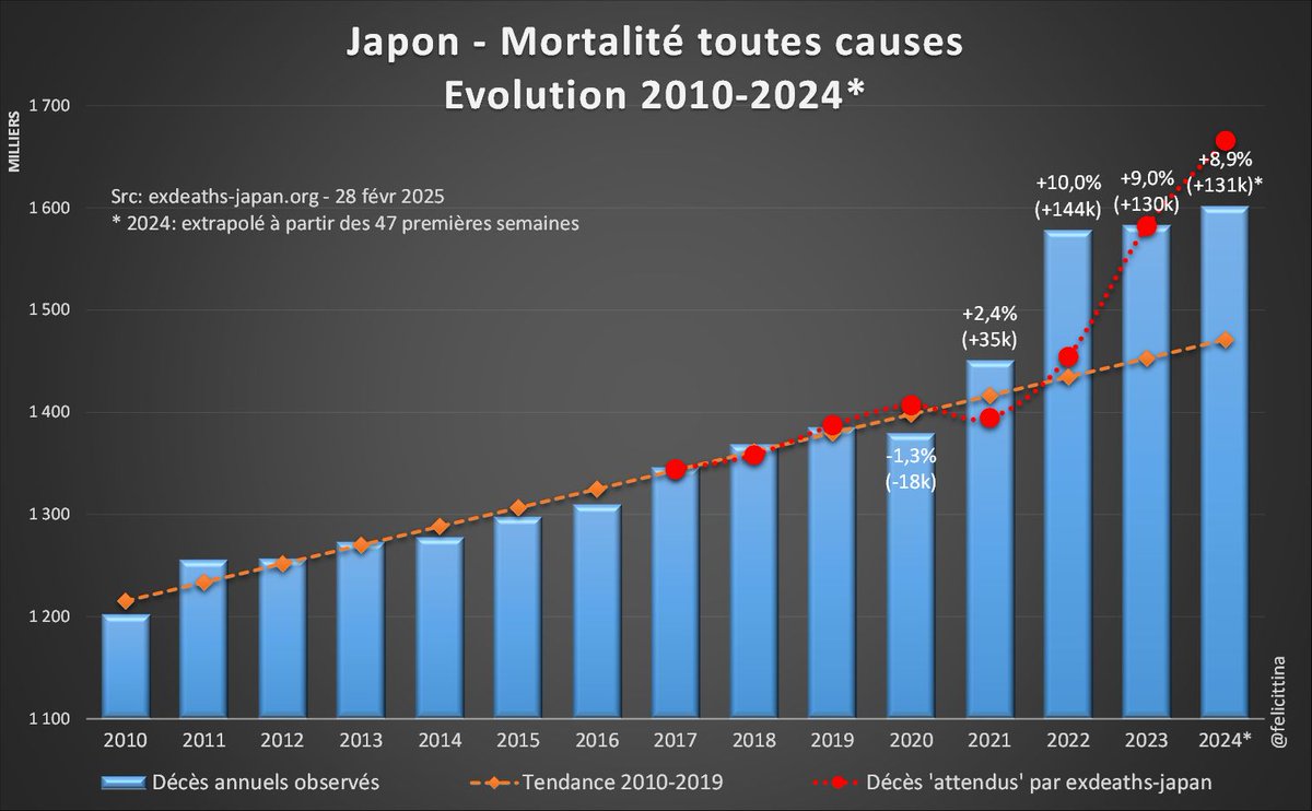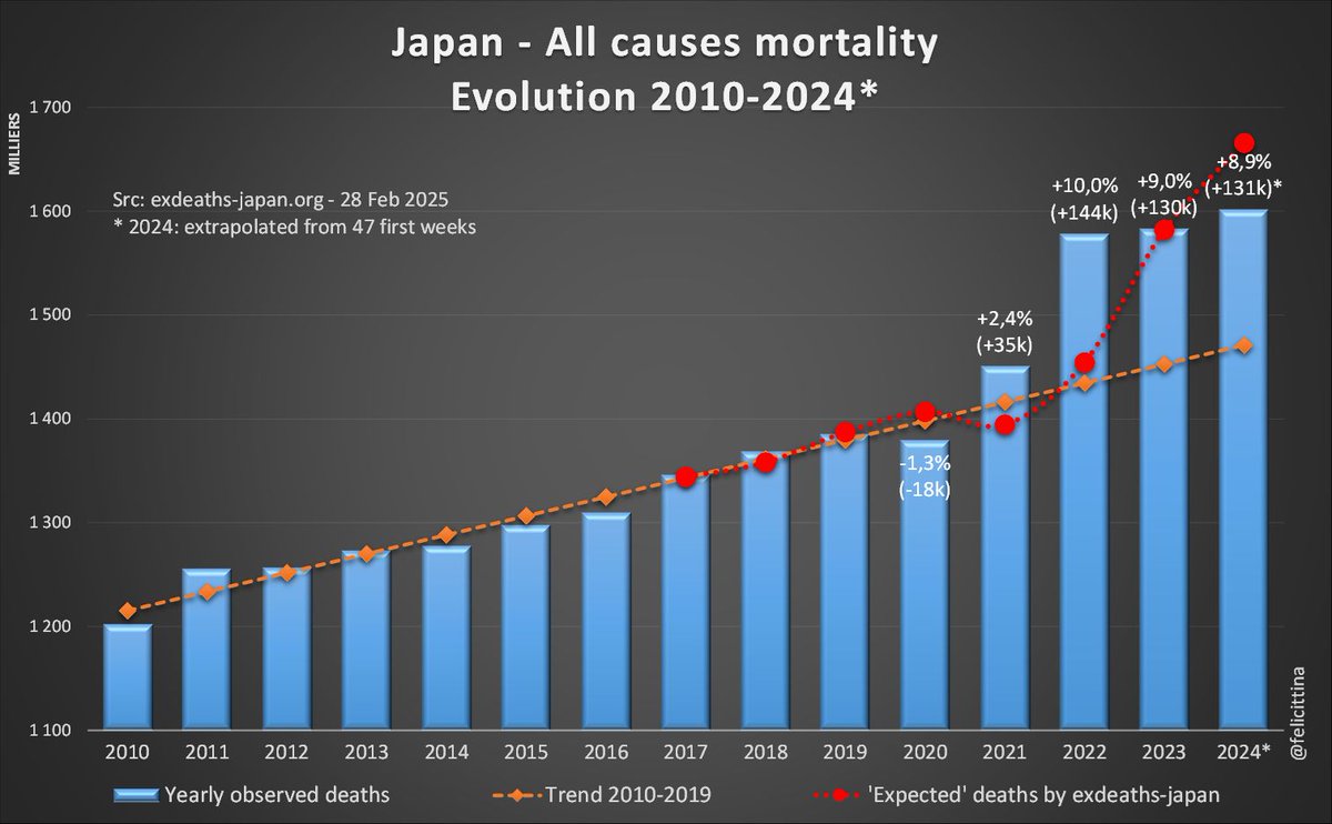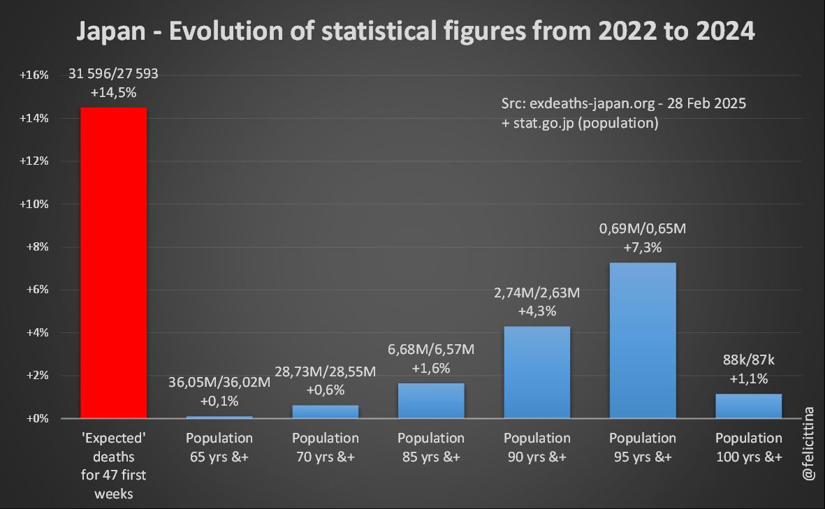 1. NON ! http://exdeaths-japan.org, vous n'avez pas le droit de camoufler les surmortalités au Japon depuis 2023, en vous appuyant sur des décès "attendus" 🔴en hausse de… +14,5%. Cela s'appelle une fraude ! ⏬ (1/n)
