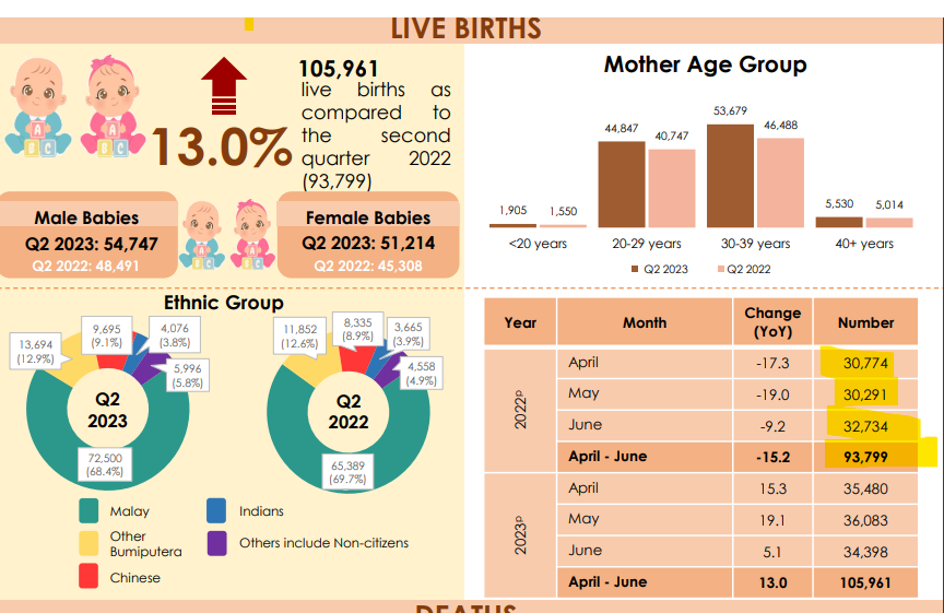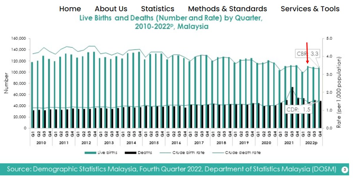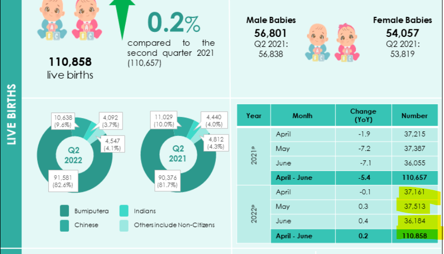 Sources : 9 août 2023 : https://www.dosm.gov.my/portal-main/release-content/9c705836-8b7c-11ed-96a6-1866daa77ef9 9 fév. 2023 : https://www.dosm.gov.my/portal-main/release-content/6f55f6d9-8b7c-11ed-96a6-1866daa77ef9 8 sept. 2022 : https://www.dosm.gov.my/portal-main/release-content/demographic-statistics-second-quarter-2022-malaysia [5/5]
