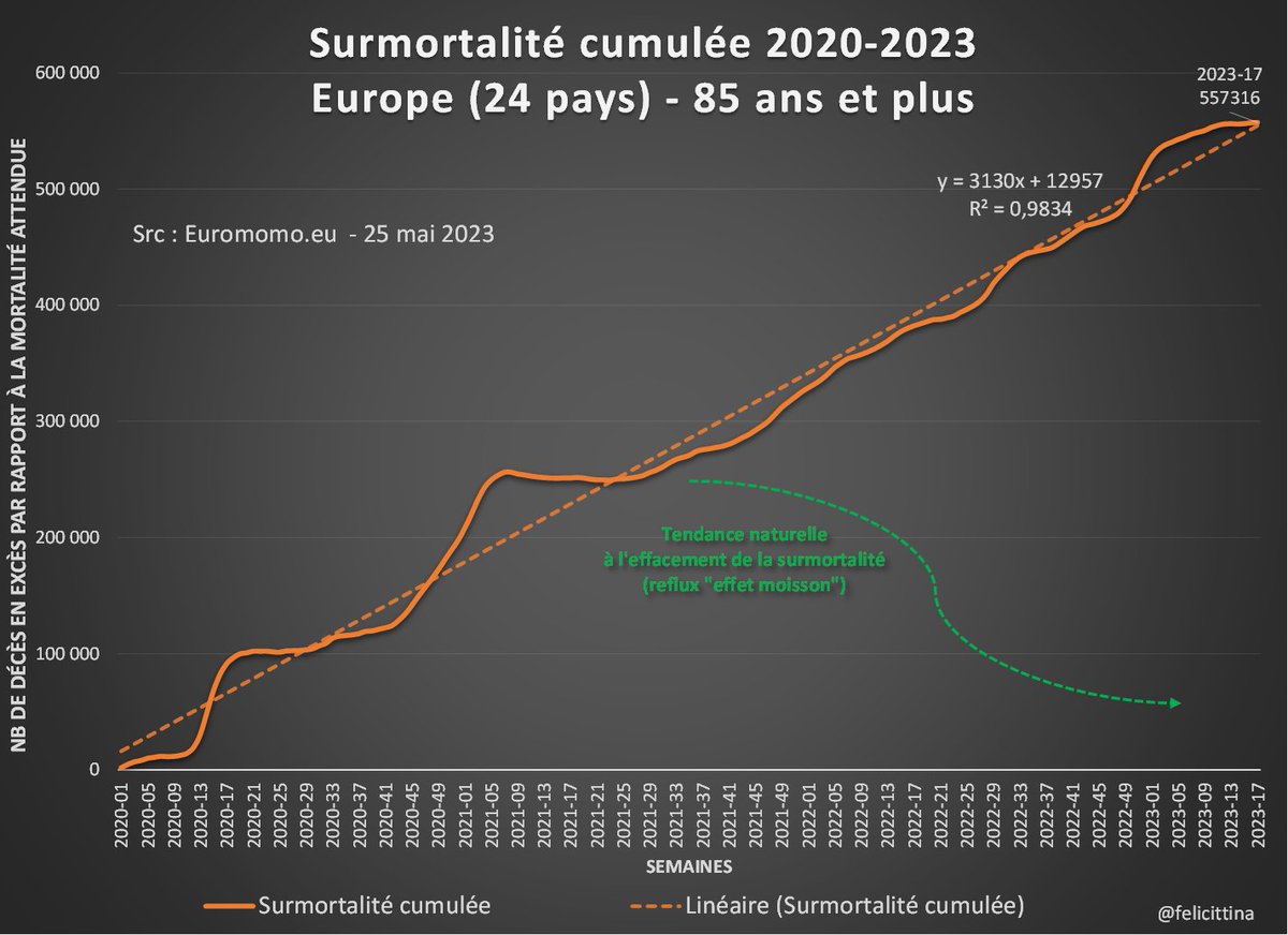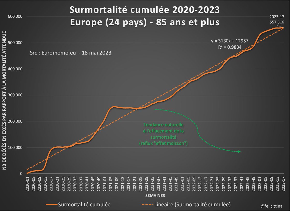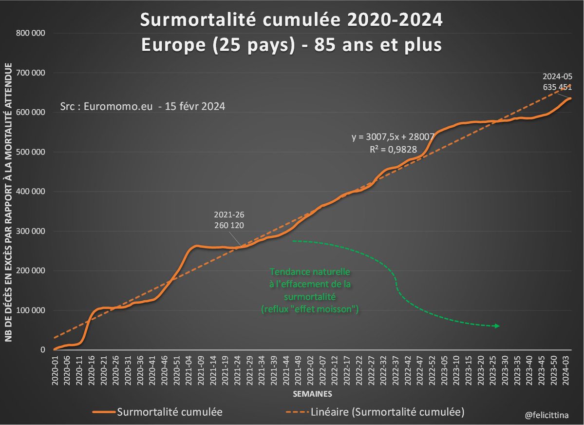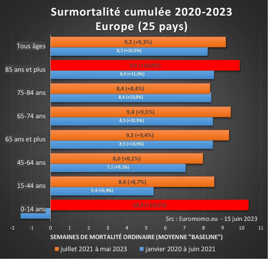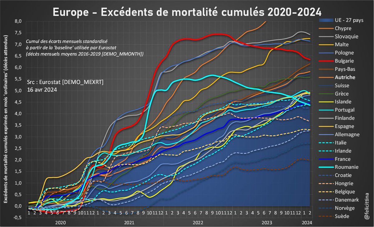 @felicittina @EU_Eurostat Ok, quand je dis 55 000 morts de trop en 2022 par rapport à la moyenne SANS tenir compte de l'effet moisson AVEC l'effet moisson c'est plus de 80 000 morts inexpliquées de trop en 2022 après 150 millions de doses de "vaccins" Ces pseudo vaccins TUENT !