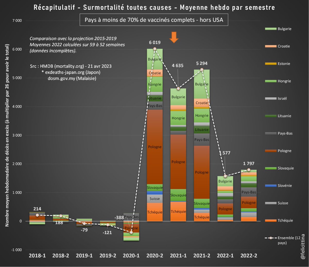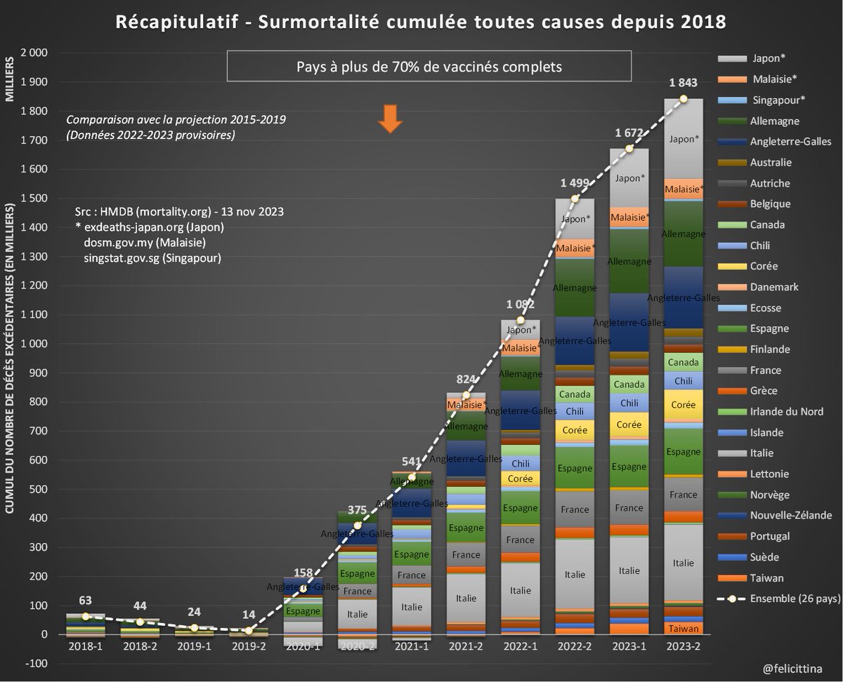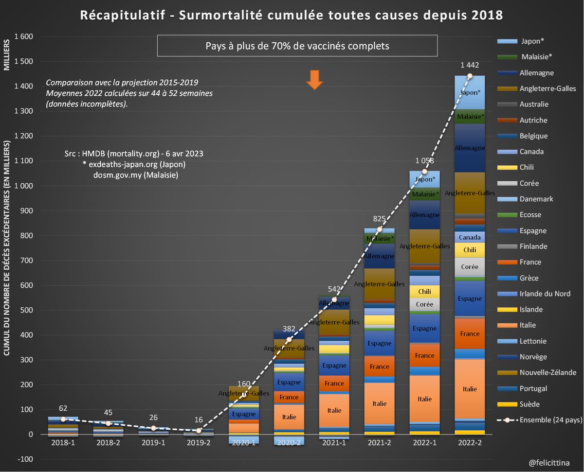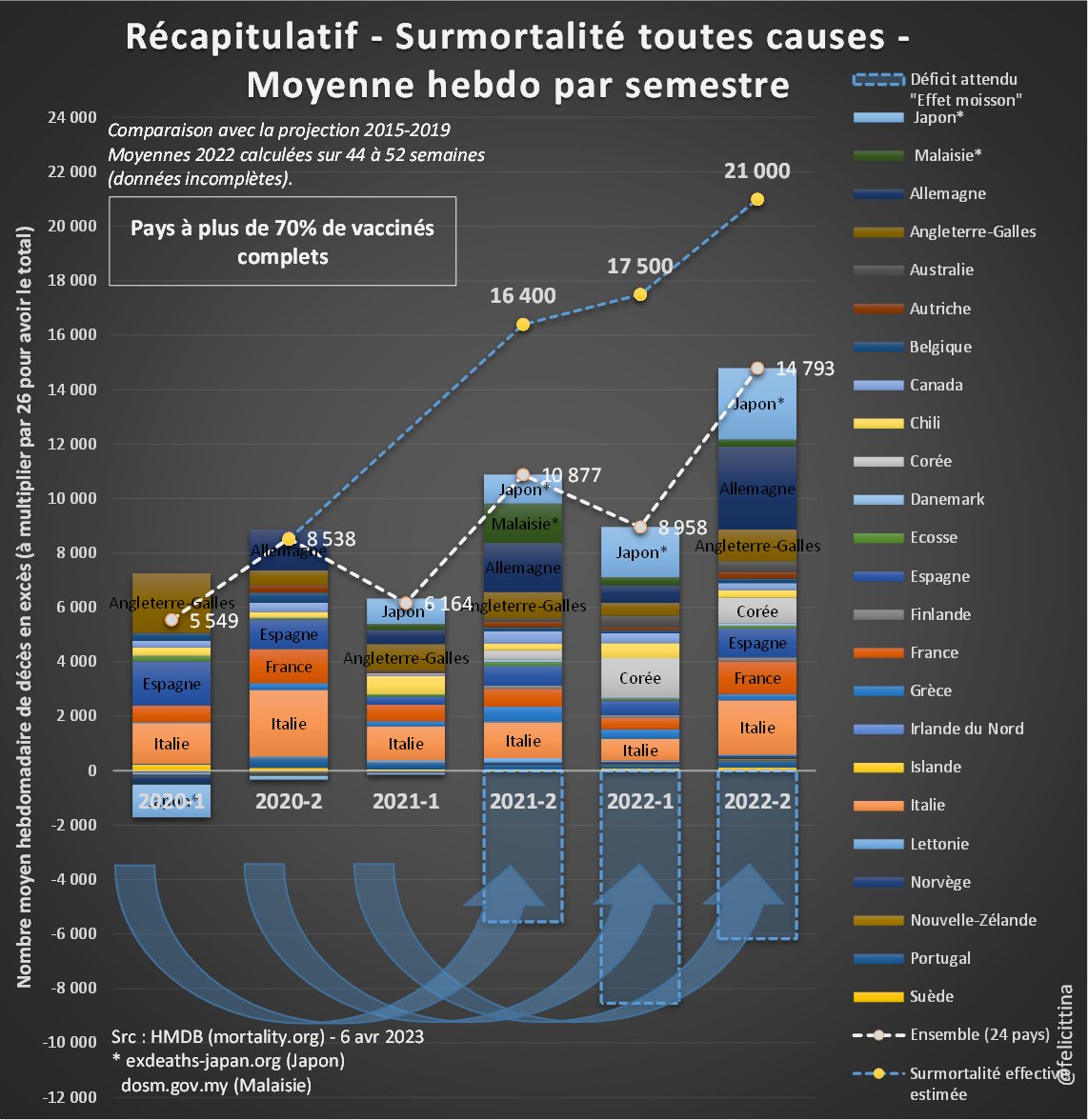 @felicittina @EU_Eurostat Ok, quand je dis 55 000 morts de trop en 2022 par rapport à la moyenne SANS tenir compte de l'effet moisson AVEC l'effet moisson c'est plus de 80 000 morts inexpliquées de trop en 2022 après 150 millions de doses de "vaccins" Ces pseudo vaccins TUENT !