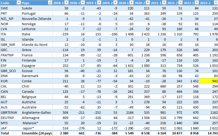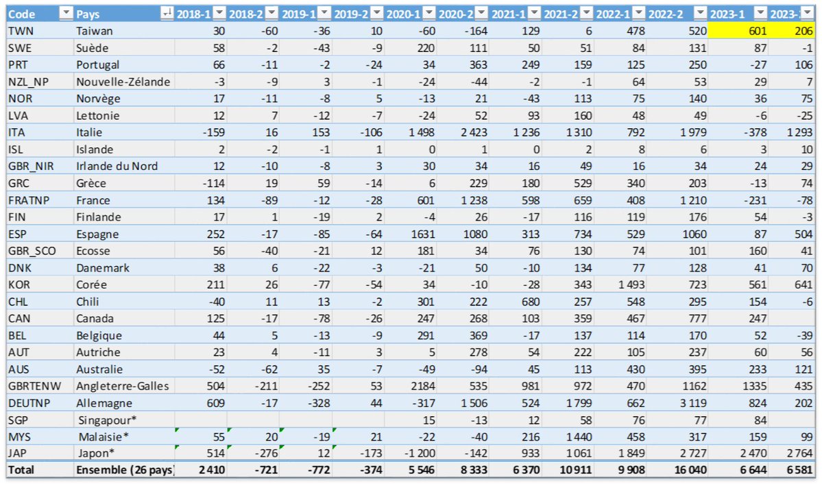 La source des ces chiffres est très facilement vérifiable ici : https://ec.europa.eu/eurostat/databrowser/view/DEMO_MEXRT__custom_3434113/bookmark/table?lang=fr&bookmarkId=05c46227-0aa8-4aaf-a632-e77a023cfa66… Tous les calculs sont déjà faits ! [5/5] https://t.co/Rail27b6ZV