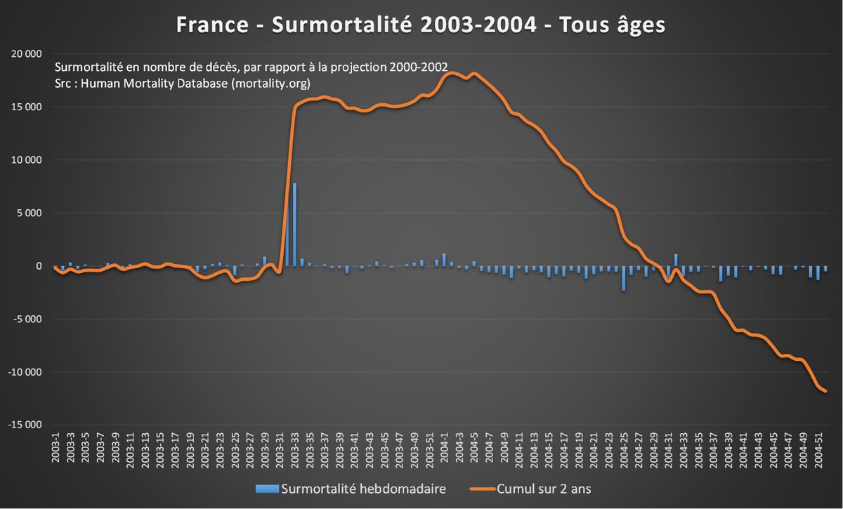 …on ne meurt généralement qu'une fois, cela va laisser des vides qui vont se traduire tôt ou tard par des sous-mortalités sensiblement équivalentes. Ce qu'on appelle l'effet moisson. D'autant plus rapide que cela concerne des personnes déjà fragiles… [2/5]