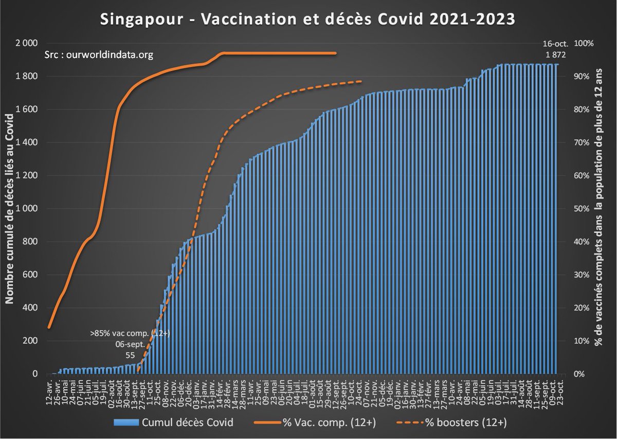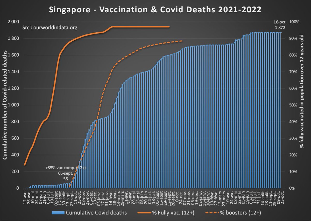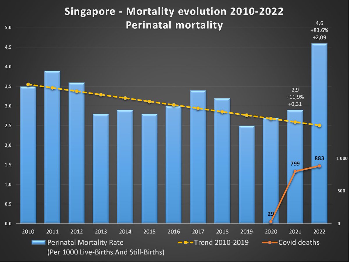 en 2 ans (+17% en moyenne). Les décès attribués au Covid ne représentent qu'un quart de cette surmortalité. Sources : Chiffres mensuels (jusqu'en mars) : https://tablebuilder.singstat.gov.sg/table/TS/M810121 Chiffres dernier trimestre : https://www.ica.gov.sg/news-and-publications/statistics