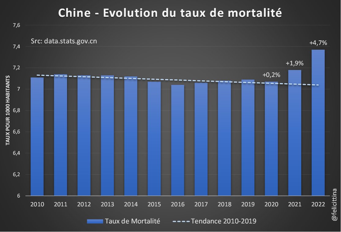 …2010-2019 ou 2015-2019 (régressions linéaires) habituellement utilisées. Puisque ces tendances supposent une évolution linéaire de la mortalité, alors que l'effet moisson de 2020-2021 devrait se traduire par un plafonnement voire une diminution de celle-ci. [5/6]