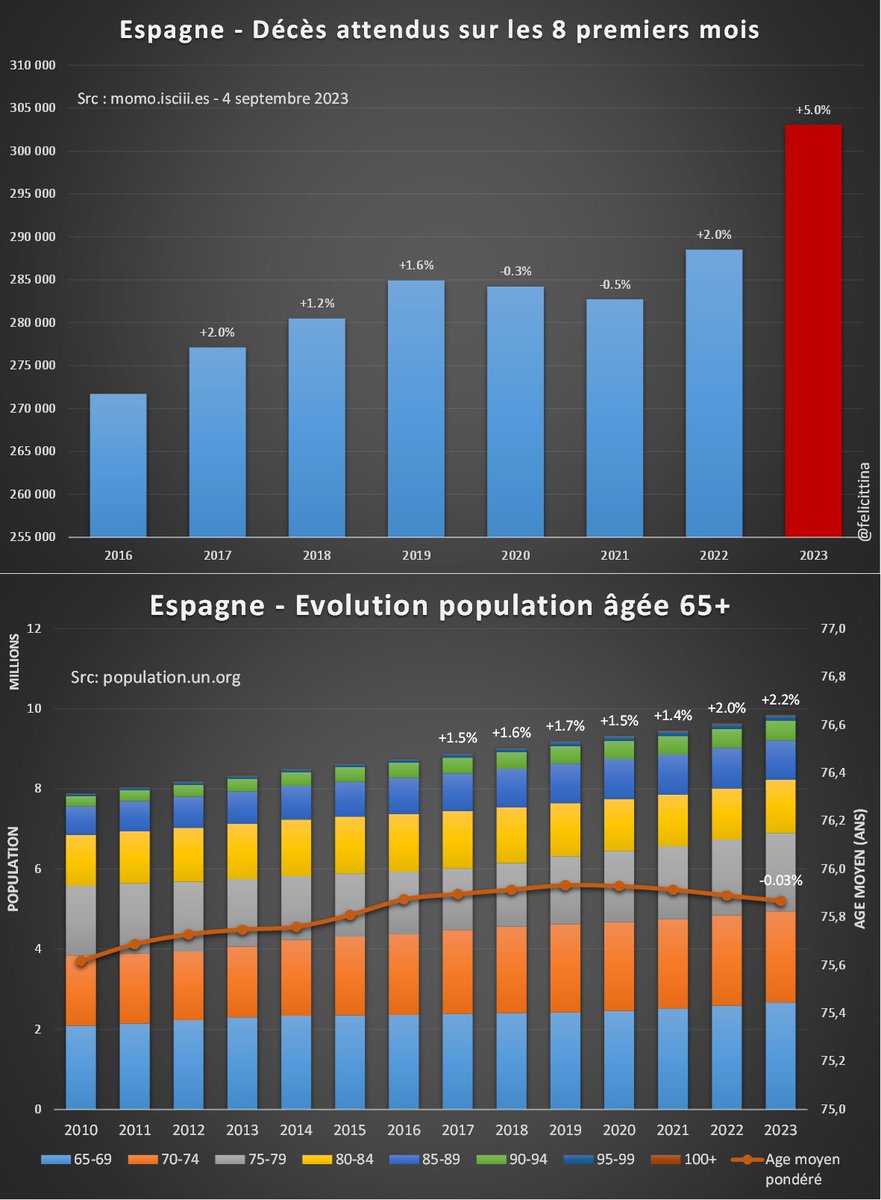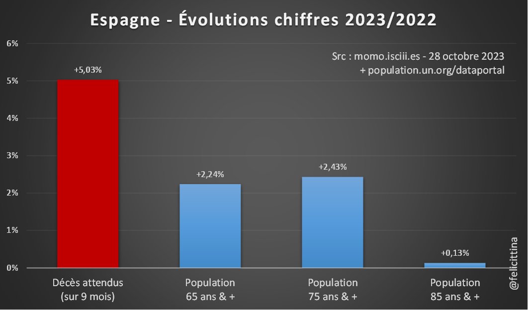 🔝 En 2023, il s'agit de faire croire à un début de correction des surmortalités accumulées. ⬇️ Mais si on plafonne cette hausse des prévisions à la hausse de la population de 85 ans et plus, la réalité est toute autre. Vous voyez la différence entre les 2 ? [4/10]
