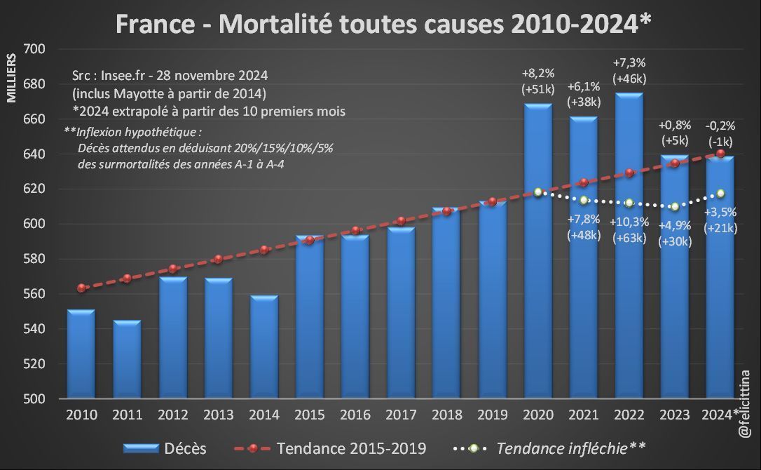 [NB : L'extrapolation pour 2023 se fait en divisant le total partiel, sur 38 semaines, par la mortalité des 38 premières semaines sur la période 2010-2019 et en multipliant par la mortalité sur 52 semaines sur cette même période] [7/10]