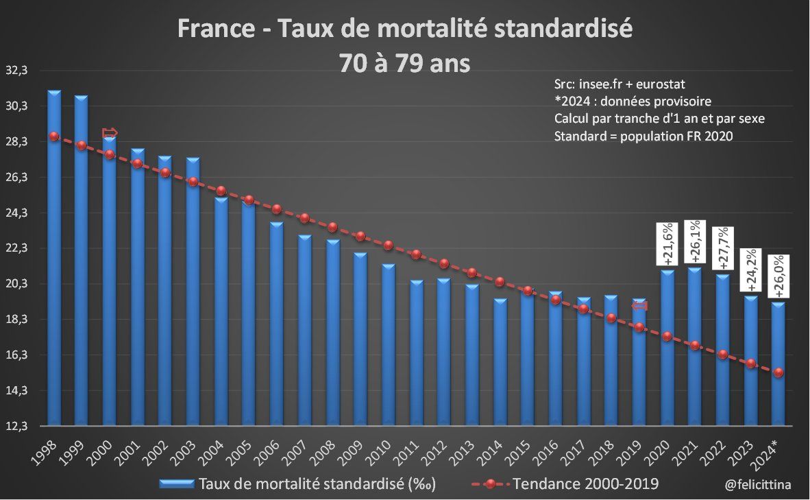 …alors qu'on a une surmortalité persistante chez les plus de 70 ans, à la place de la sous-mortalité espérée. Bienheureux ceux qui nous peuvent nous assurer, sans cas de conscience, qu'il n'y a absolument rien de tracassant ! [8/9]
