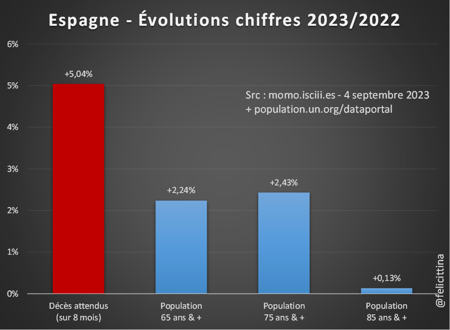 Y aurait-il eu un vieillissement brutal de la population espagnole qui justifierait une telle augmentation dans les prévisions. Loin de là. Les plus de 85 ans, qui représentent environ la moitié des décès, voient même leur effectif stagner.