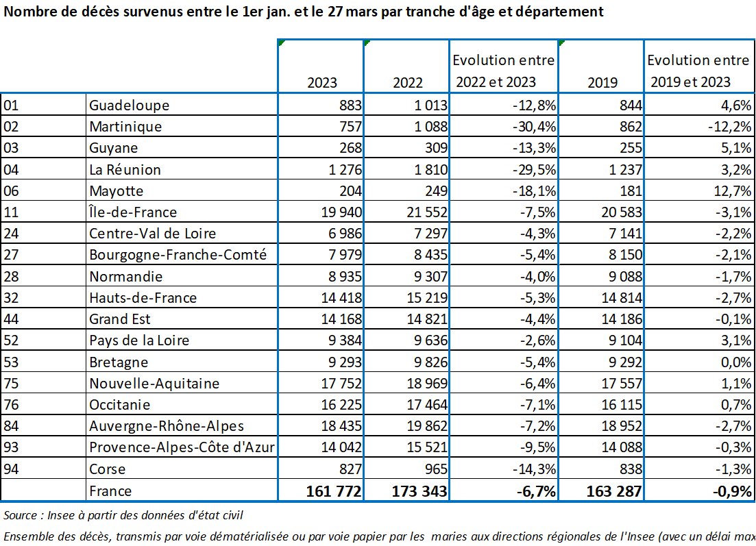 L'unique tranche de population à augmenter de manière un peu significative en 2023 est celle des 75-79 ans. Et ce "rebond" isolé plafonne à +6,1%. Toutes les autres variations sont inférieures à +3,3% et souvent négatives. [2/10]