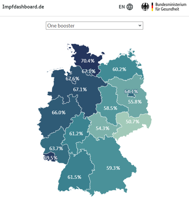 On nous avait expliqué que les sévères surmortalités rencontrées par l'Allemagne fin 2021 puis crescendo en 2022 coïncidaient avec un taux de vaccination inférieur à la moyenne européenne. Mais il semblerait donc que cette surmortalité 2022 se soit concentrée à l'Ouest. [2/6]