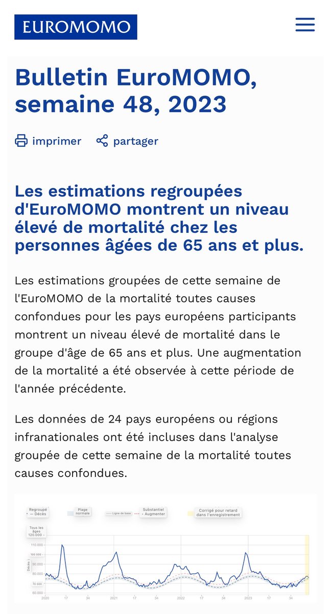 Confirmation dans les chiffres d'#Euromomo que, non seulement on ne voit toujours pas la décrue attendue, mais, pire, la #surmortalité recommence à s'accumuler au rythme moyen observé depuis 4 ans, autour de +3000 par semaine pour les 85 ans et plus. [1/9]