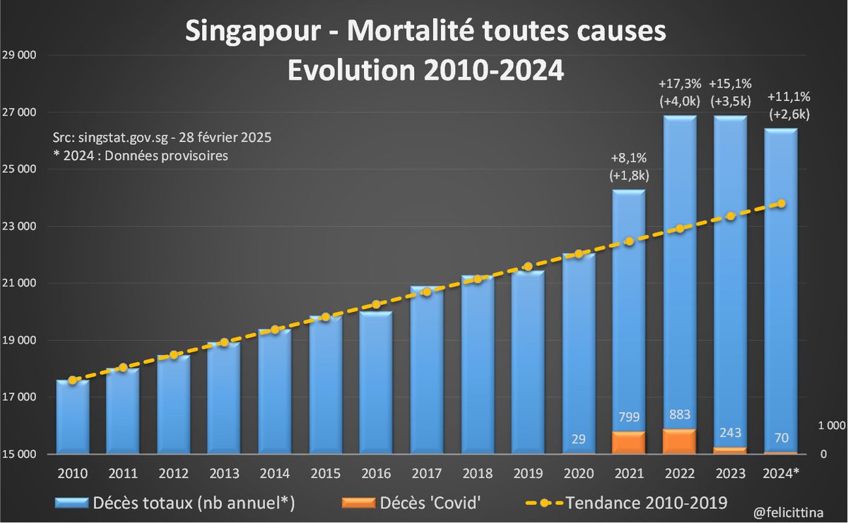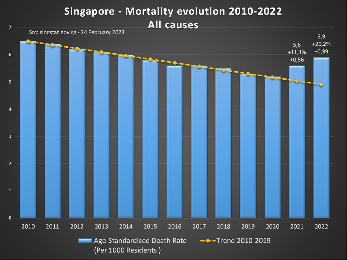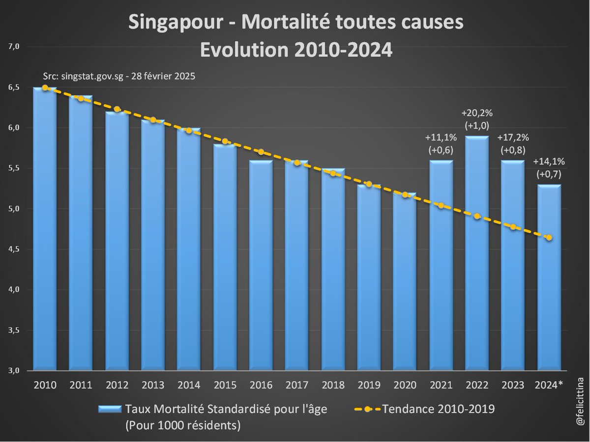 🇸🇬#Singapour #Mortalité Les chiffres pour 2024 sont là🫤 #NoProblemo Vous préférez les taux de mortalité standardisés, regardez la suite (#spoiler, c'est pire) https://t.co/q8wlgVt93y