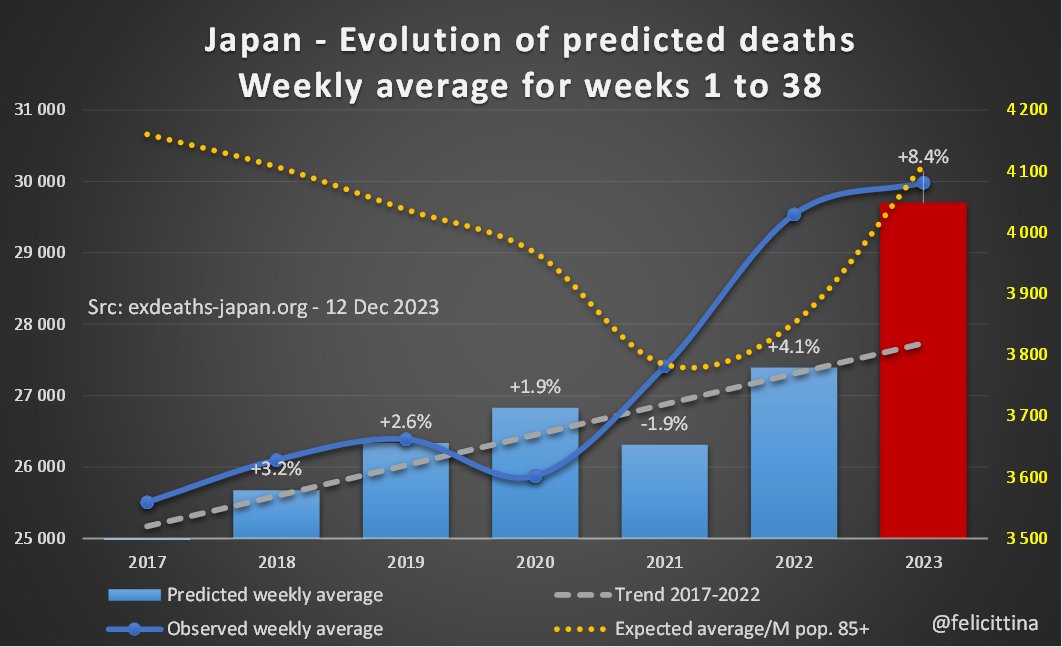1. NO! http://exdeaths-japan.org, you do NOT have the right to disguise the excess deaths in #Japan since 2023, based on ‘expected’ deaths 🔴 up by... +14.5%. That's called fraud! ⏬ (1/n)