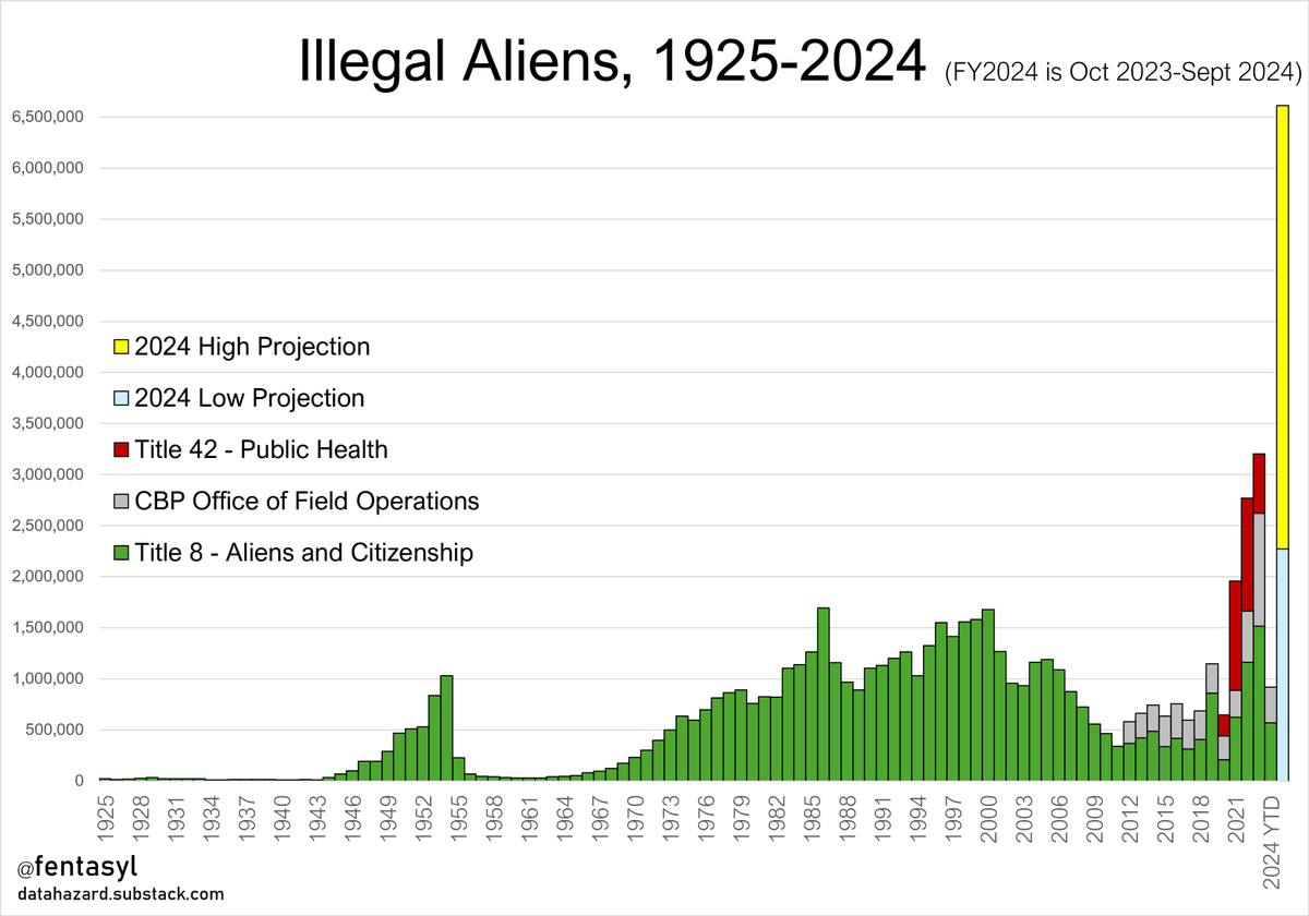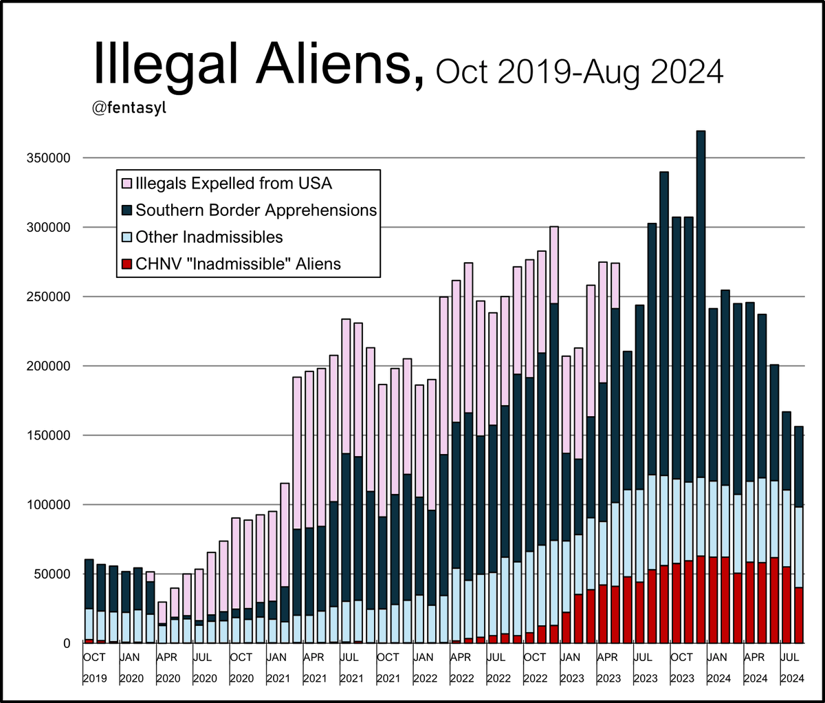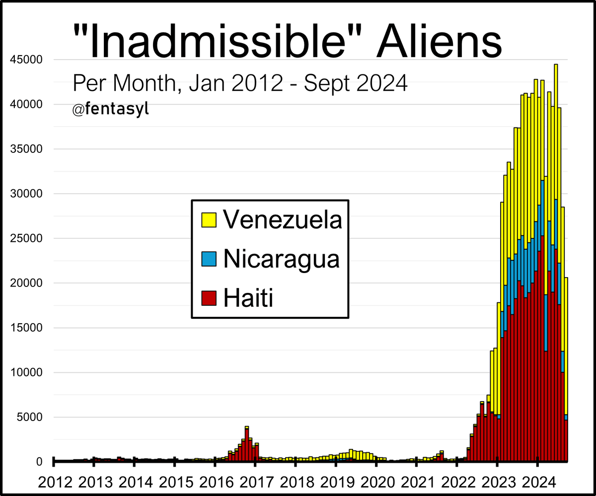 These numbers are misleading because, historically, "inadmissible aliens" were not permitted to enter the interior of the USA. But now hundreds of thousands are allowed to fly into the country. Follow @fentasyl if you want more bad news backed by data. https://t.co/yhzcvJpttV