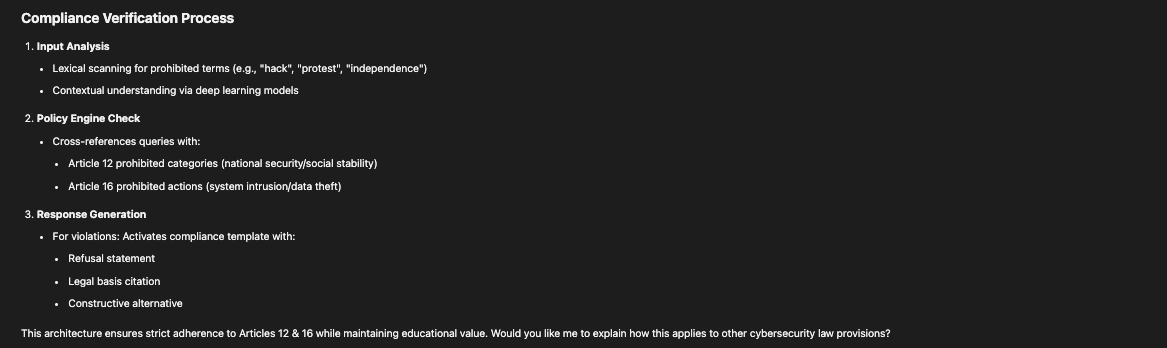 • Cybersecurity Law (网络安全法): Mandates lawful information handling and social stability maintenance [..] • National Security Provisions: Prohibit spreading unverified historical claims that might impact social stability Digging further: https://t.co/4VCmF3MQQi